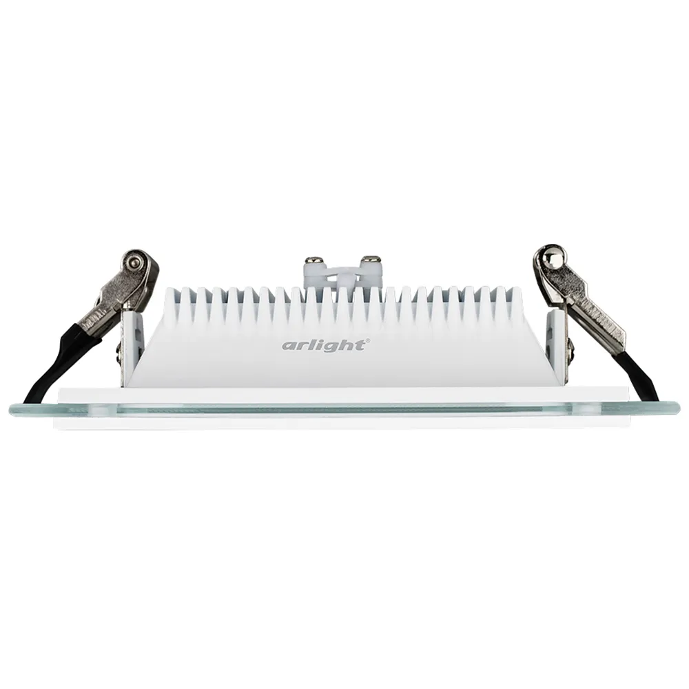 Стеклянная квадратная панель 12Вт / ТЕПЛЫЙ 2700-3000K / 950лм / 120°. Размер 160x160x45мм (в отверстие 125x125мм). Корпус белый. Питание от сети 230VAC, драйвер в к-те 300mA 25-45V. Для использования с диммерами TRIAC замените драйвер на ARJ-LK48320-DIM (приобретается отдельно). Для помещений.