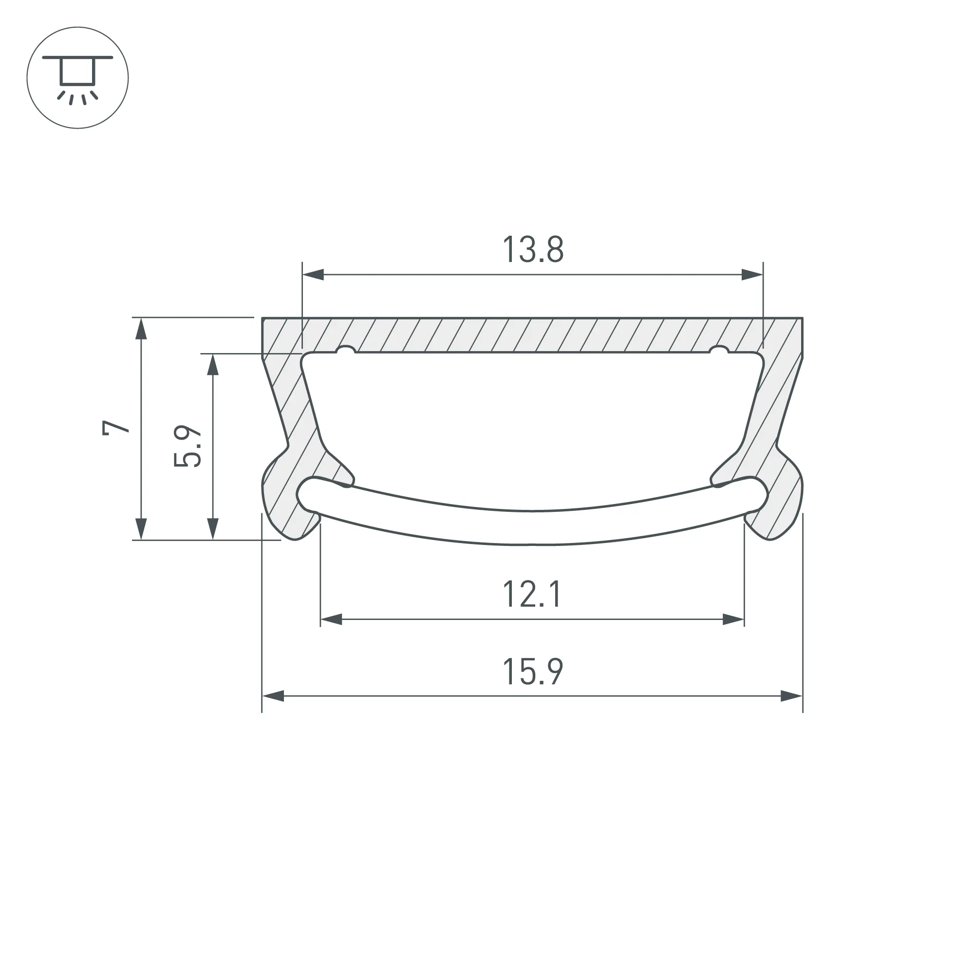 Алюминиевый профиль для светодиодных лент и линеек. Габаритные размеры (L×W×H): 2000x15,9x7 мм. Ширина площадки для ленты 13,8 мм. Экраны, заглушки и другие аксессуары приобретаются отдельно. Цена за 1 метр.
