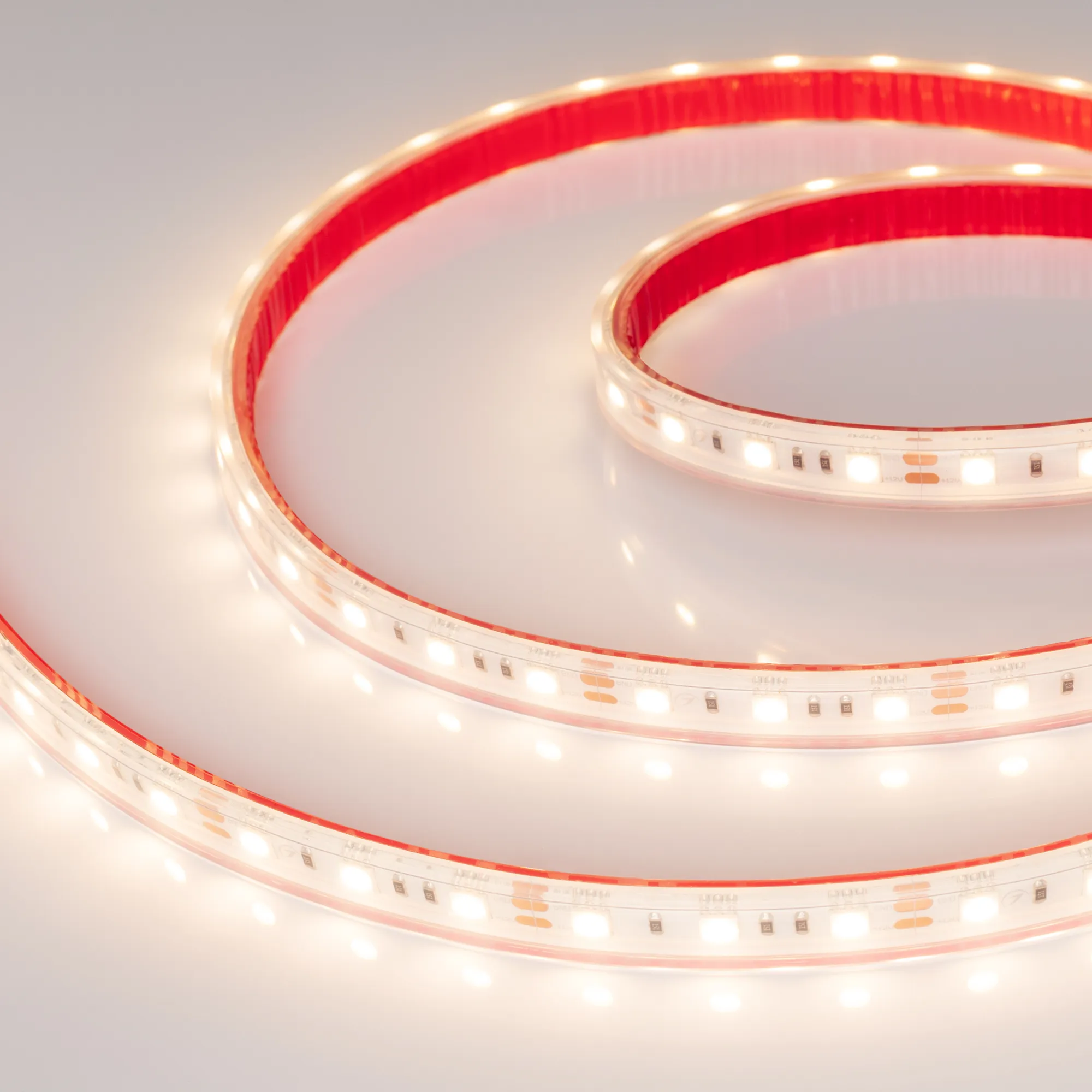 Герметичная лента IP67 (силикон, экструзия), светодиоды smd 5060, 60шт/м (300шт на 5м), белая плата 10мм, скотч 3М. Цвет ТЁПЛЫЙ 2900-3100K. Питание 12V, мощность 14.4 Вт/м (72 Вт на 5м), угол 120°, цветопередача CRI>85. Размеры 5000х12x5мм. Мин.отрезок 50мм, 3 светодиода. Цена за 1м.