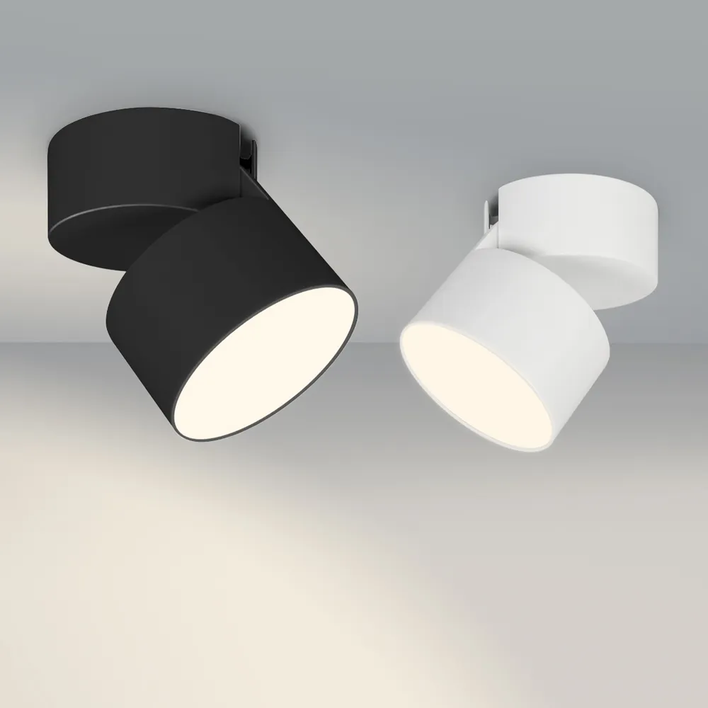 Накладной откидной светильник 16Вт, белый круглый корпус. Цвет ТЕПЛЫЙ 3000K, св.поток 1080лм, CRI(Ra)>90, угол 110°. Размер светильника Ф95x55мм, размер чаши Ф95x45мм. Питание AC220-240V, 16Вт, драйвер встроенный (400mA, 30-42V). Поворачивается вокруг своей оси на 350° и отклоняется на 90°.Пульсация <0,3%