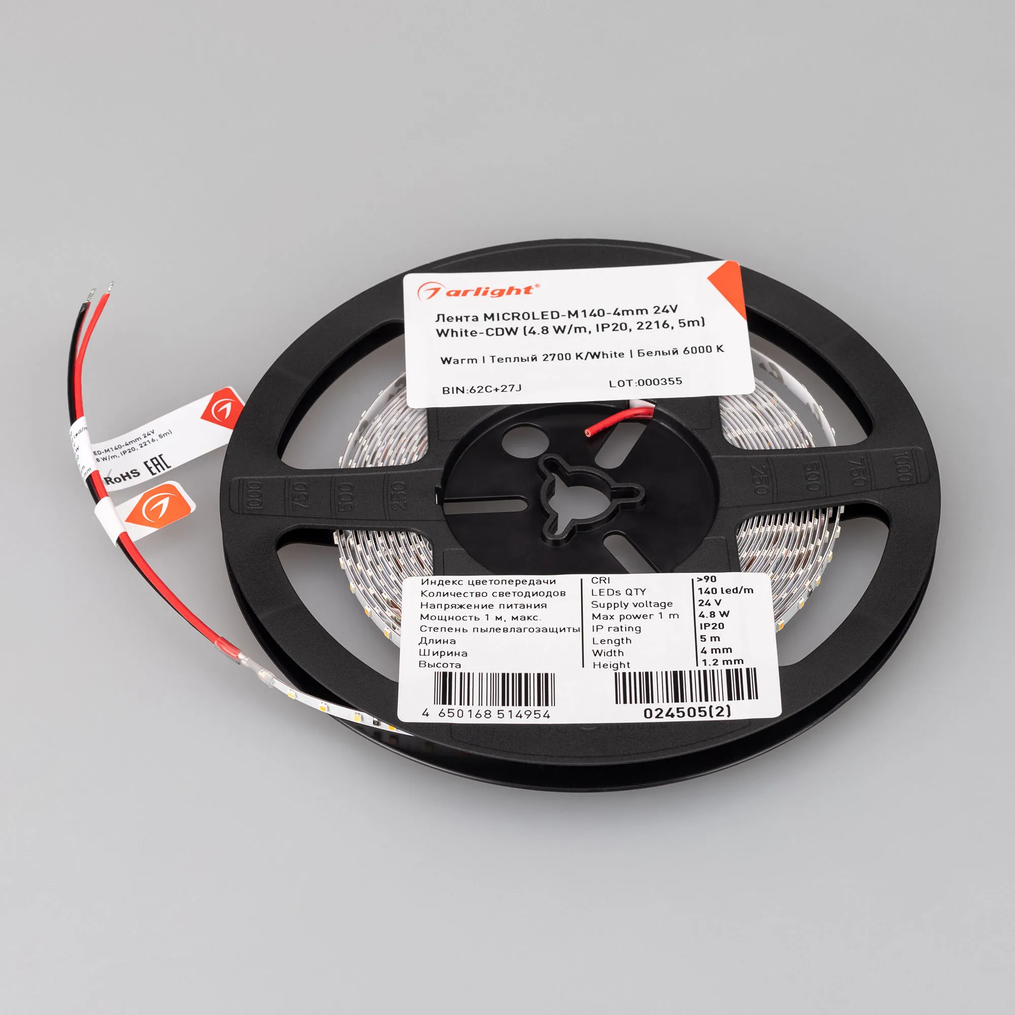 В магазине Arled Market Вы можете купить "Лента светодиодная MICROLED-M140-4mm 24V White-CDW (4.8 W/m, IP20, 2216, 5m) (Arlight, узкая)"