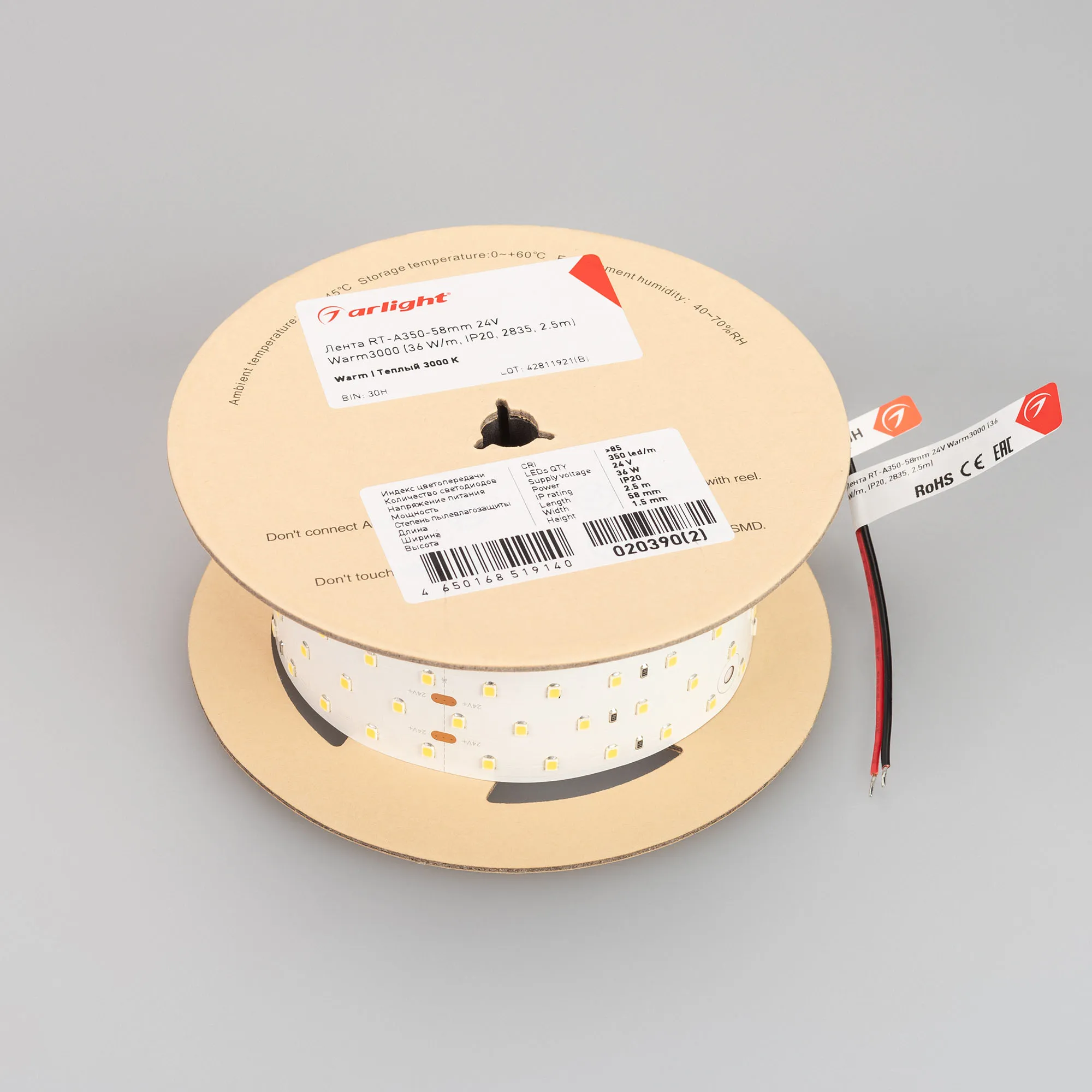 В магазине Arled Market Вы можете купить "Лента светодиодная RT-A350-58mm 24V Warm3000 (36 W/m, IP20, 2835, 2.5m) (Arlight, Открытый)"