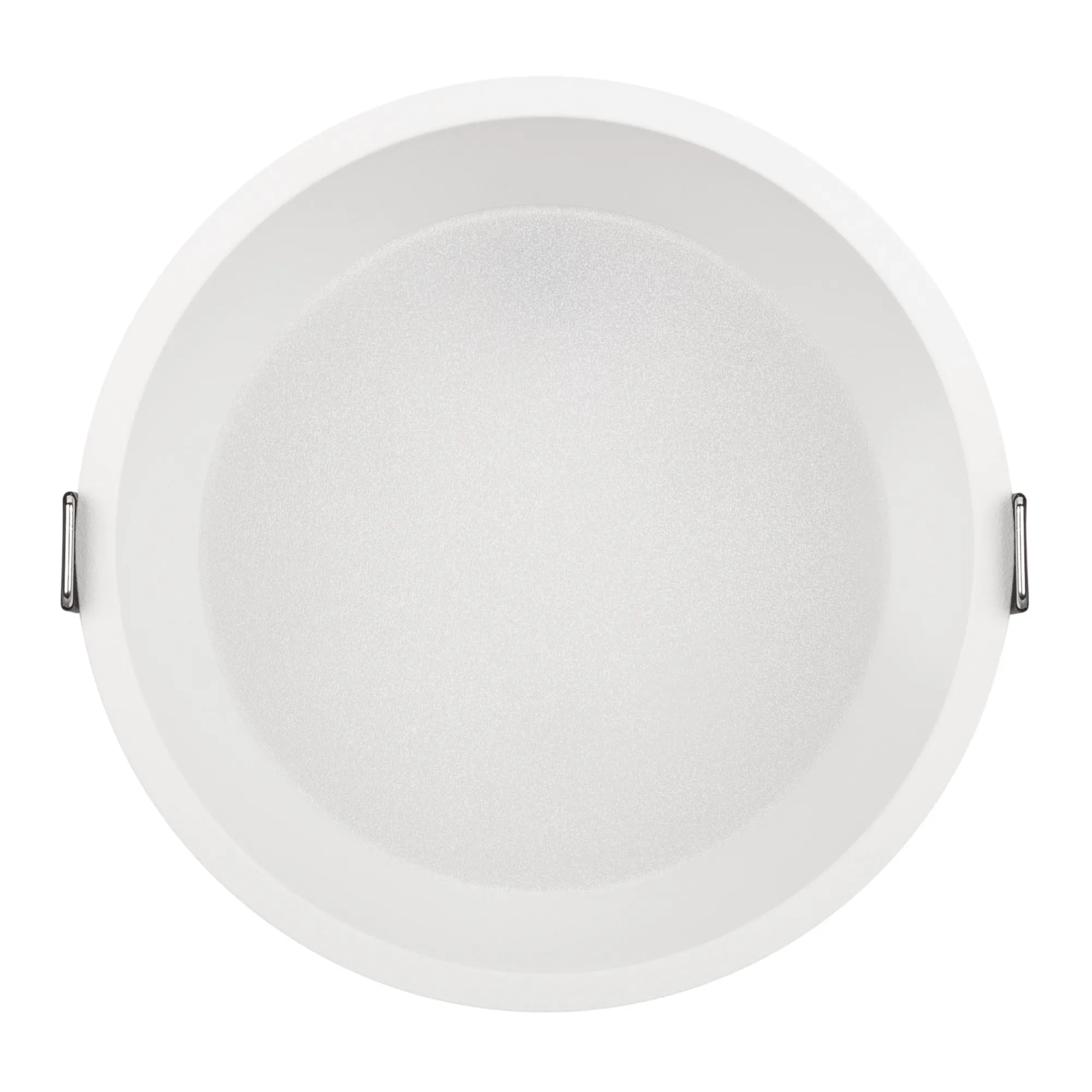 Встраиваемый светильник даунлайт. Мощность 16 Вт, св. поток 1220 лм, 76 лм/Вт, дневной 4000 K, CRI>90, угол 90°, напряжение питания 230 В. Белый круглый корпус из алюминия, степень защиты IP20. Размер: диаметр 125 мм, высота 60 мм. Монтаж встраиваемый, установочное отверстие: диаметр 115 мм. Драйвер 27-42 В, 400 мА, пульсация <2%.
