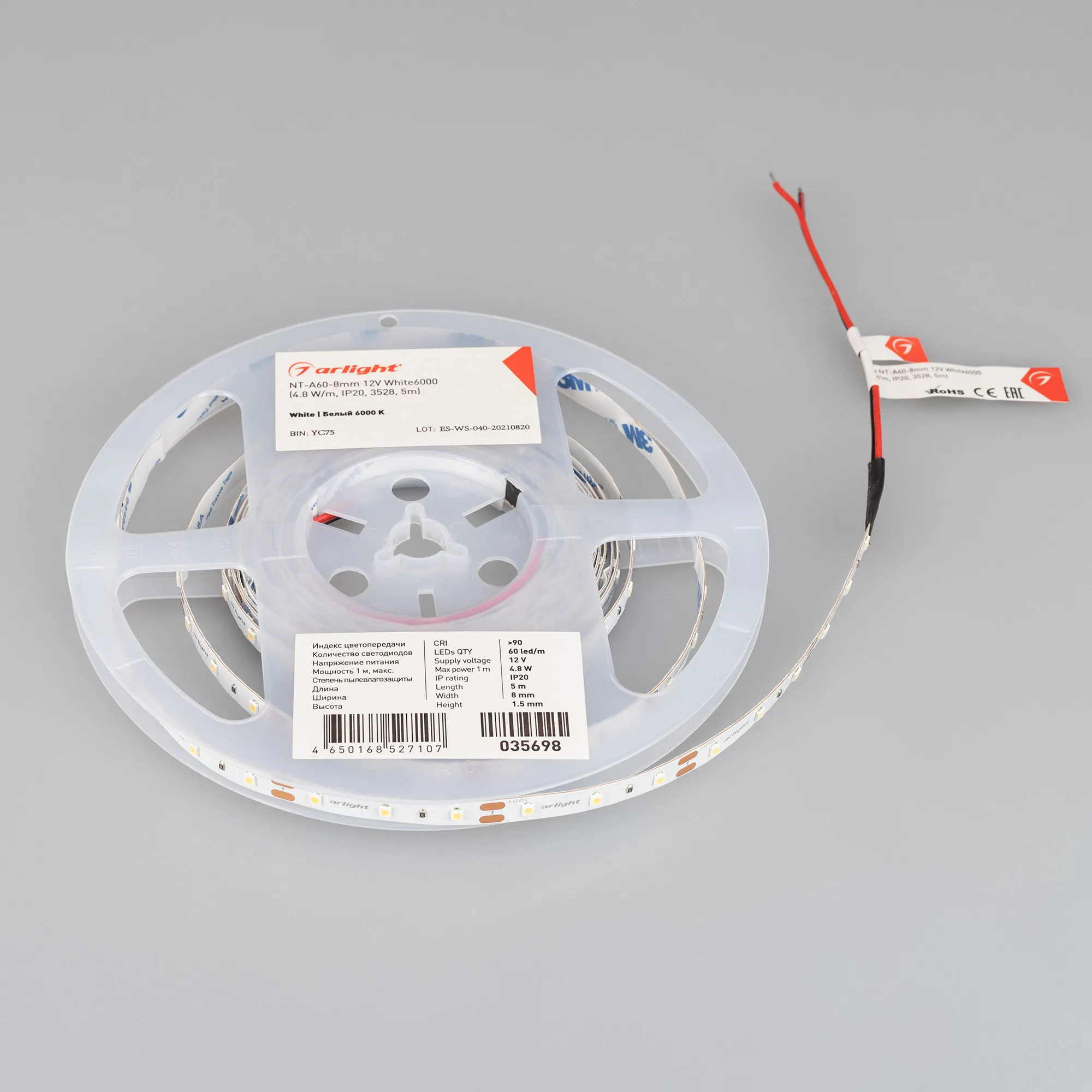 В магазине Arled Market Вы можете купить "Лента светодиодная NT-A60-8mm 12V White6000 (4.8 W/m, IP20, 3528, 5m) (Arlight, Открытый)"