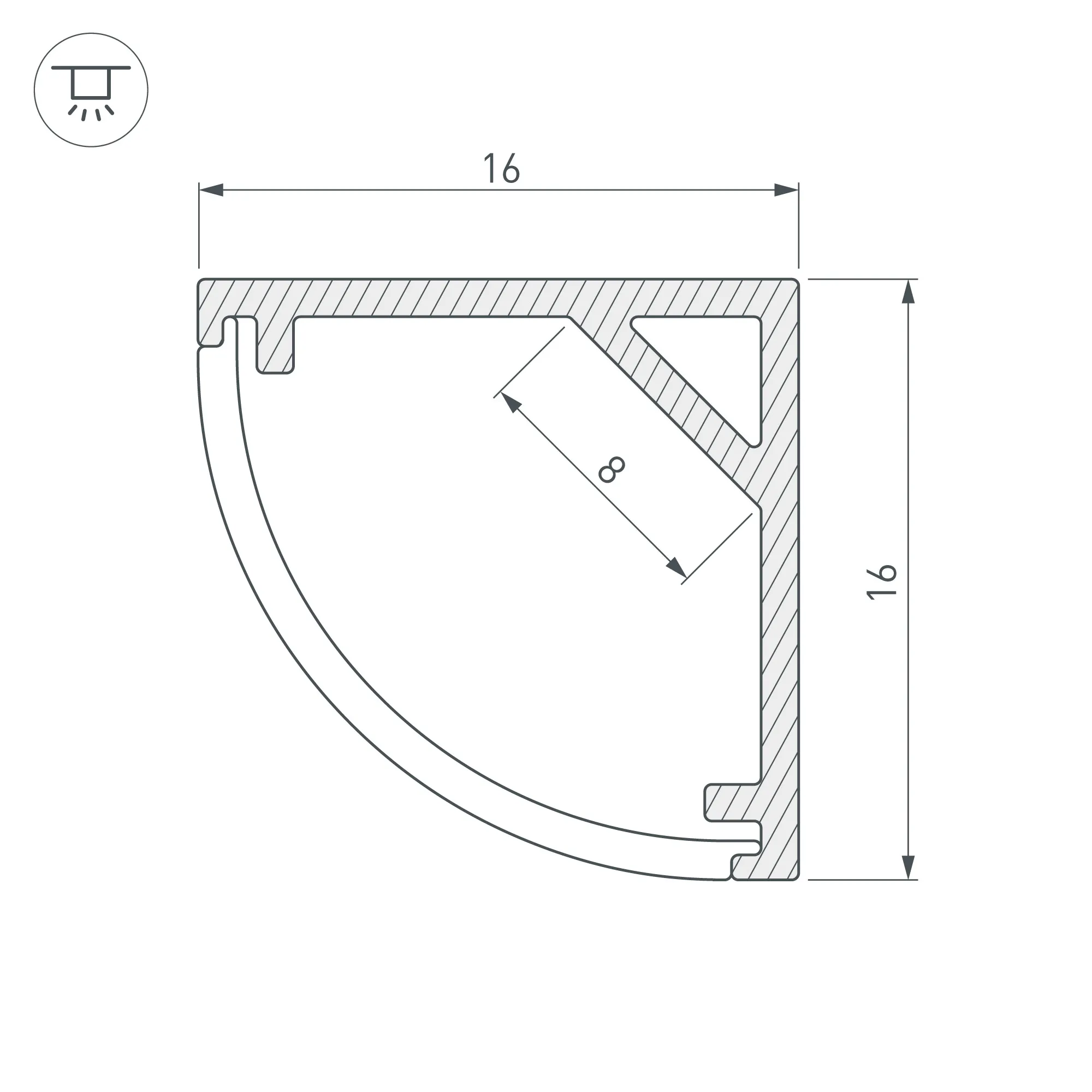 Алюминиевый угловой профиль для светодиодных лент и линеек. Цвет - белый RAL9003 (порошковая окраска). Габаритные размеры (L×W×H): 2000x16x16 мм. Ширина площадки для ленты 8 мм. Экраны, заглушки и другие аксессуары приобретаются отдельно. Цена за 1 метр.