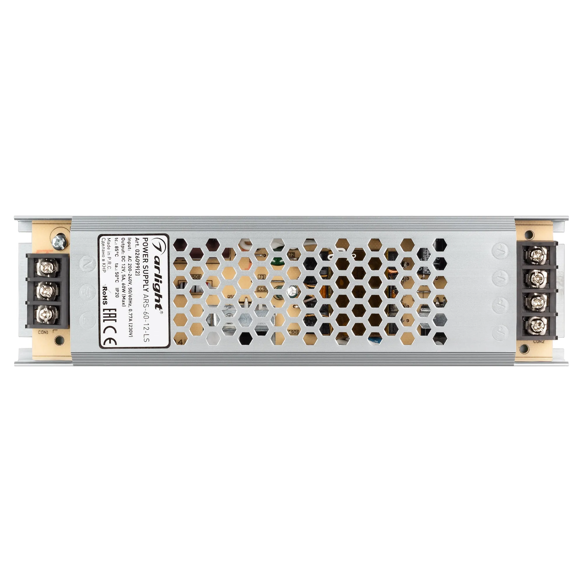Источник напряжения с гальванической развязкой для светодиодных изделий. Входное напряжение 200-240 VAC. Выходные параметры: 12 В, 5 А, 60 Вт. Негерметичный алюминиевый сетчатый корпус IP 20. Габаритные размеры длина 195 мм, ширина 53 мм, высота 22 мм. Гарантийный срок 2 года.