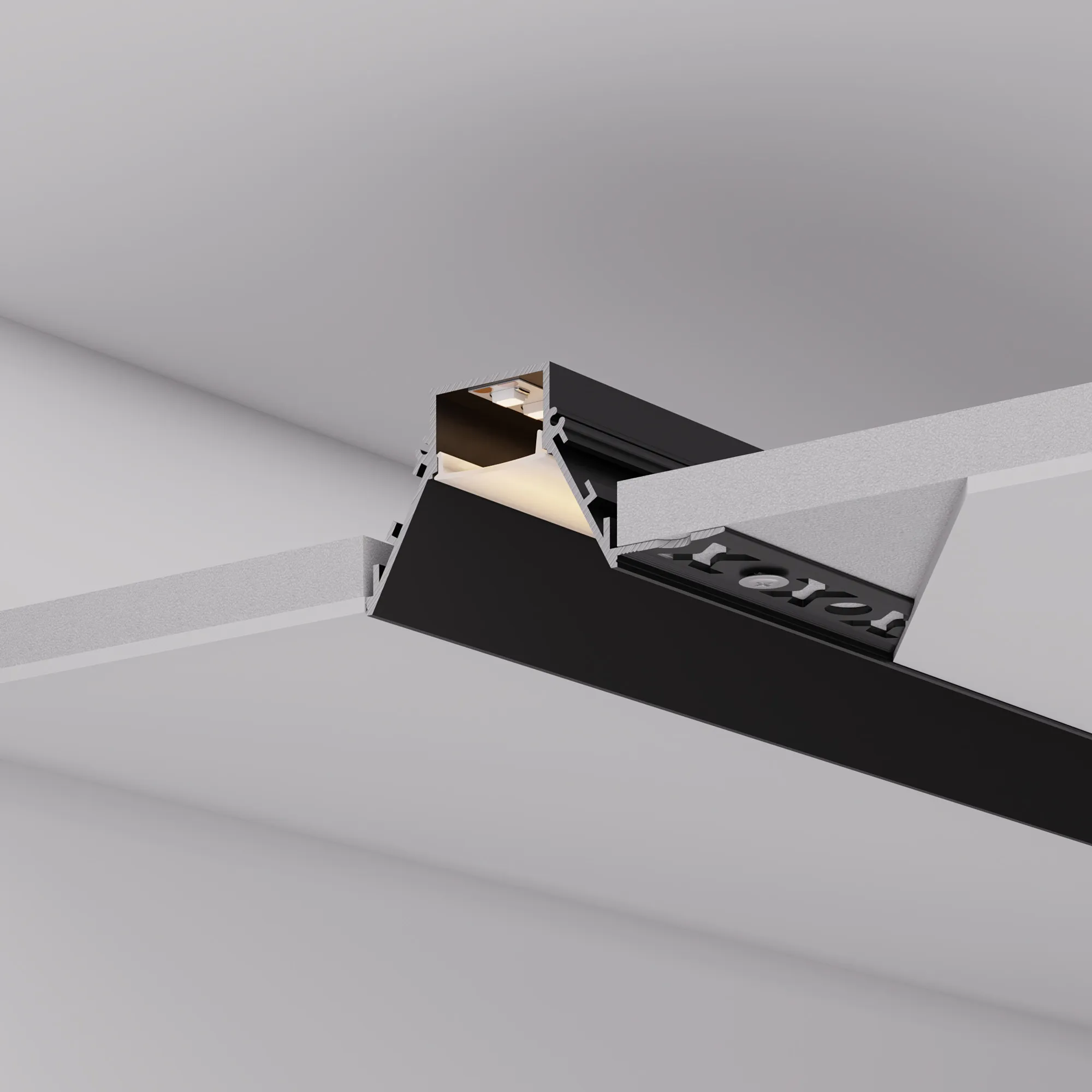 Алюминиевый профиль для светодиодных лент и линеек. Скрытая установка (под строительную отделку). Цвет - черный RAL9005 (порошковая окраска). Экран утоплен в плоскости профиля, что позволяет скрыть источник света от прямого контакта с глазами. Габаритные размеры (L×W×H): 2000x91x34,5 мм. Ширина площадки для ленты 21,6 мм. Экраны, заглушки и другие аксессуары приобретаются отдельно. Цена за 1 метр.