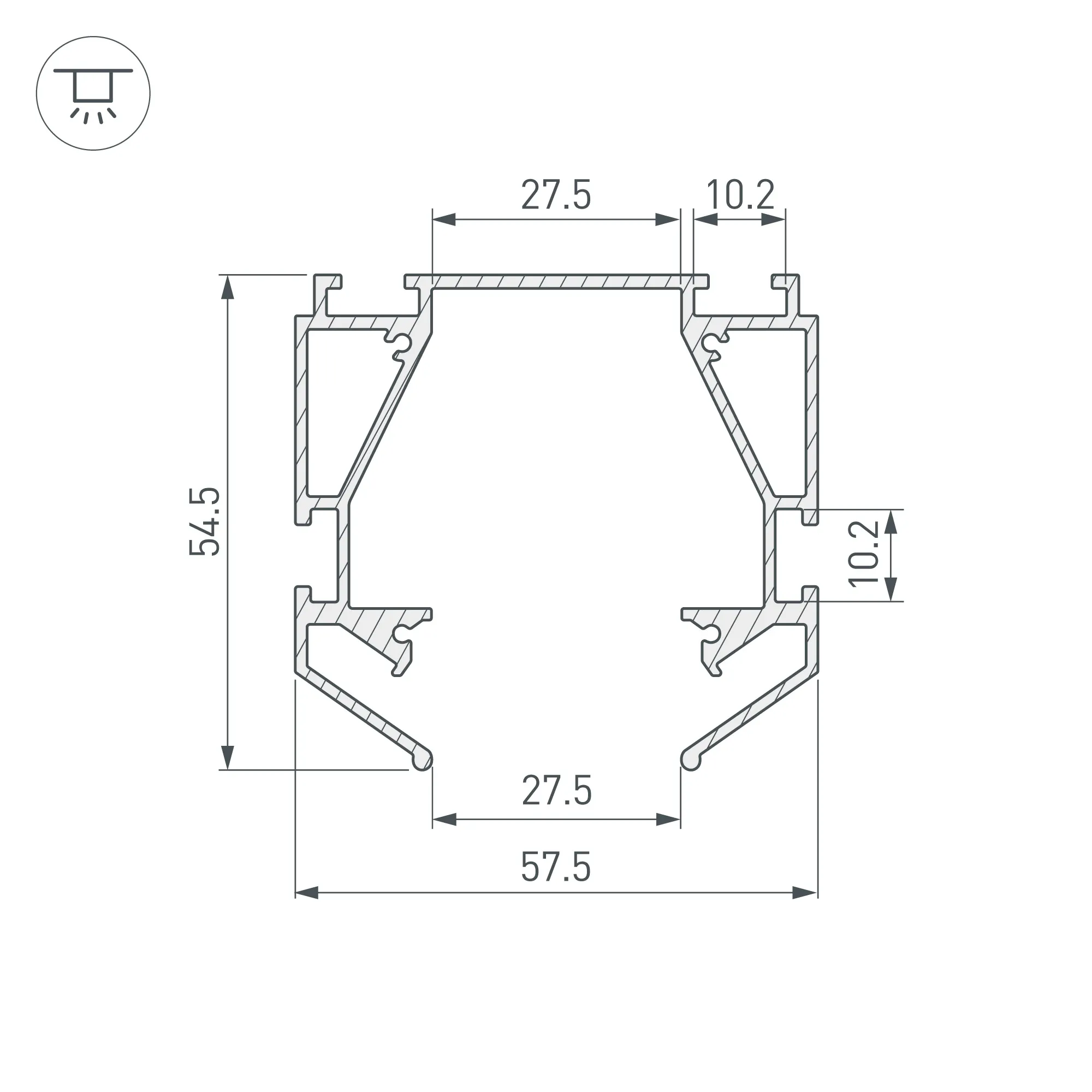 Профиль-держатель для установки магнитного трека MAG-ORIENT в натяжной потолок.Габаритные размеры (L×W×H): 2000x57,5x54,5 мм. Материал алюминий, цвет серебристый. Цена за 1 шт.