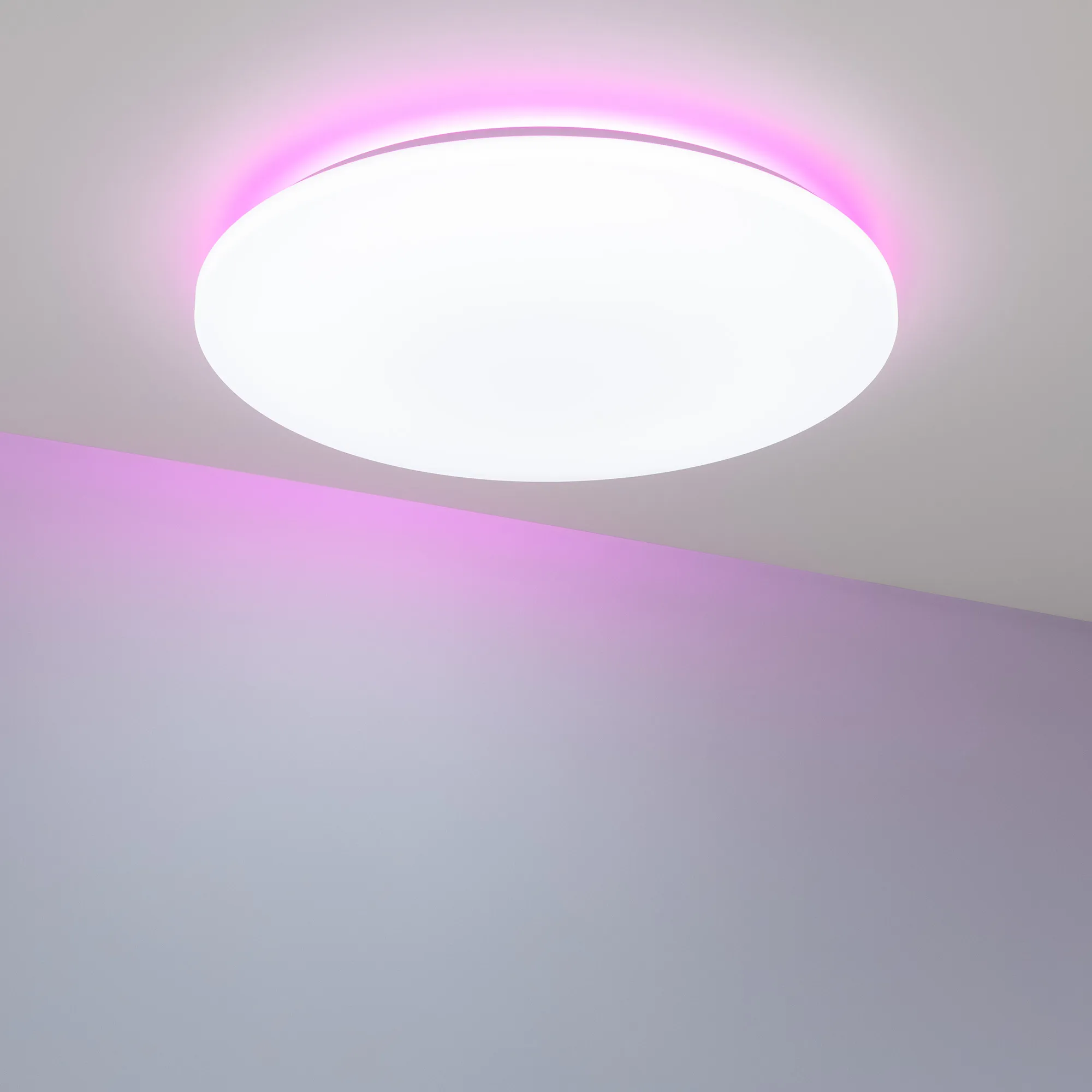 Светодиодный светильник с изменяемой цветовой температурой в диапазоне от 2700К до 6500К, с верхней подсветкой RGB. Мощность полная 50 Вт, св. поток 3000-3750 лм, 60-75 лм/Вт, CRI>90, угол 100°, напряжение питания 230 В. Белый круглый корпус из пластика, экран PC, степень защиты IP20. Размер: диаметр 570 мм, ширина 600 мм, высота 114 мм. Монтаж накладной. Драйвер TUYA Zigbee 23-40 В, 1300 мА, пульсация <5%. Мобильное приложение Smart Life или Intelligent Arlight для iOS и Android.